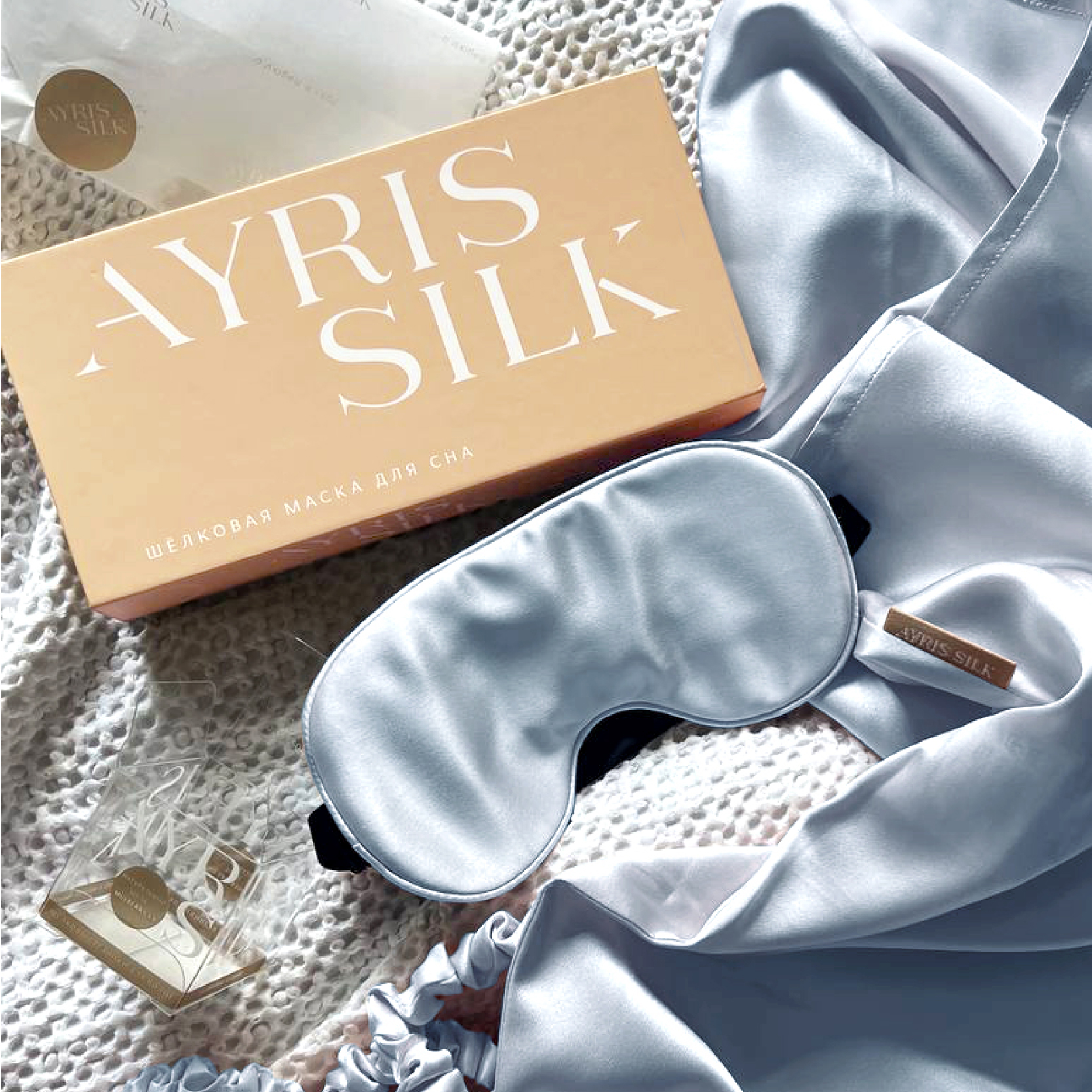 Маска для сна Somia х Ayris Silk, цвет серебристо-голубой
