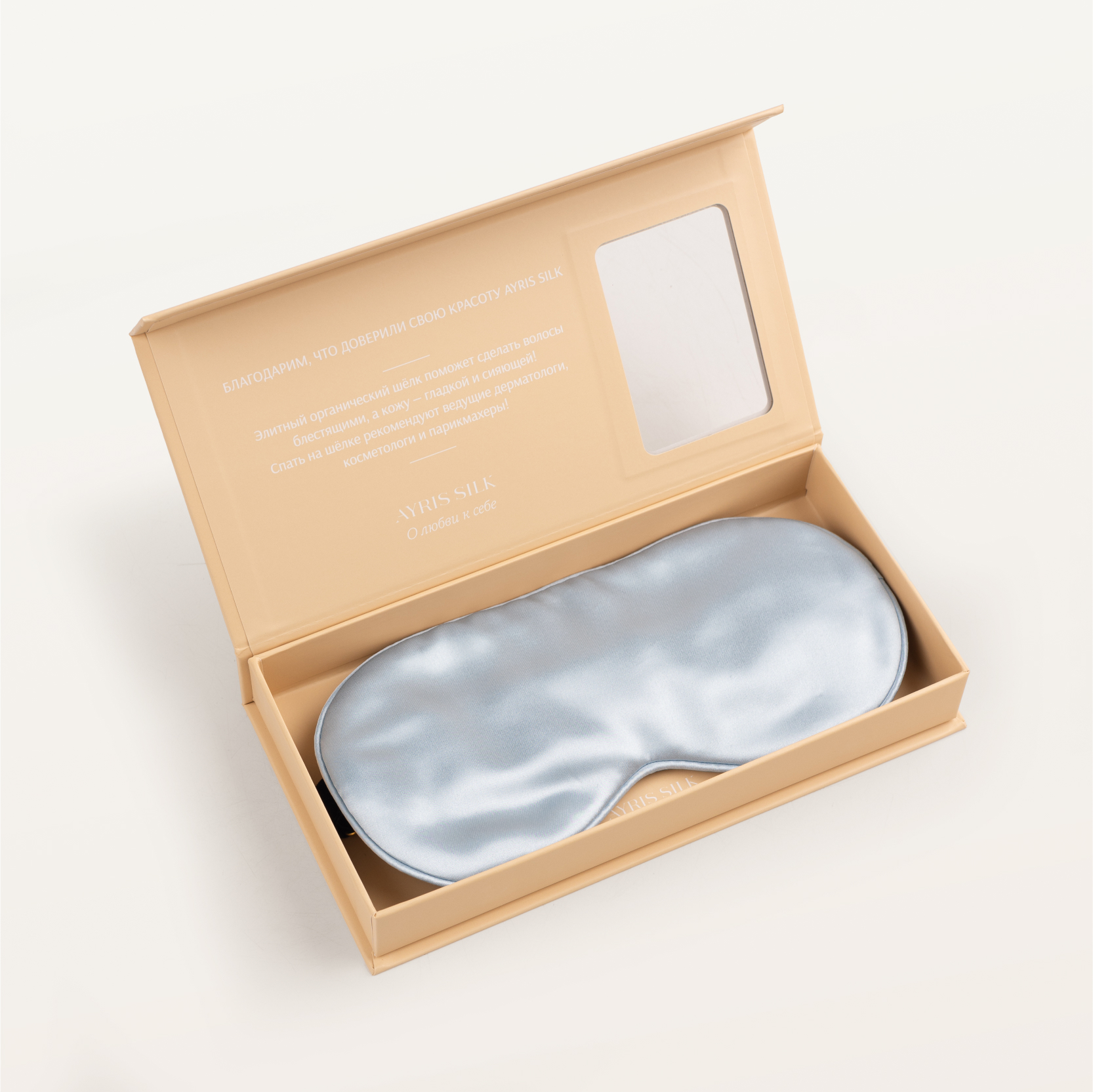 Невесомая маска из 3 слоёв фирменного шёлка Ayris дарит коже приятную прохладу, снимает напряжение с глаз и благодаря высокой плотности ткани обеспечивает надёжную защиту от света икомфортный сон в любое время суток.